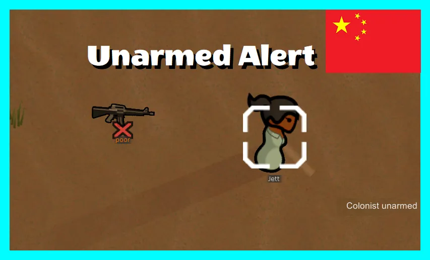 Unarmed Alert,手无寸铁警报。如果一个正常小人(有暴力能力、未被监禁、有移动能力)手里没有武器,则在屏幕右侧添加警报。