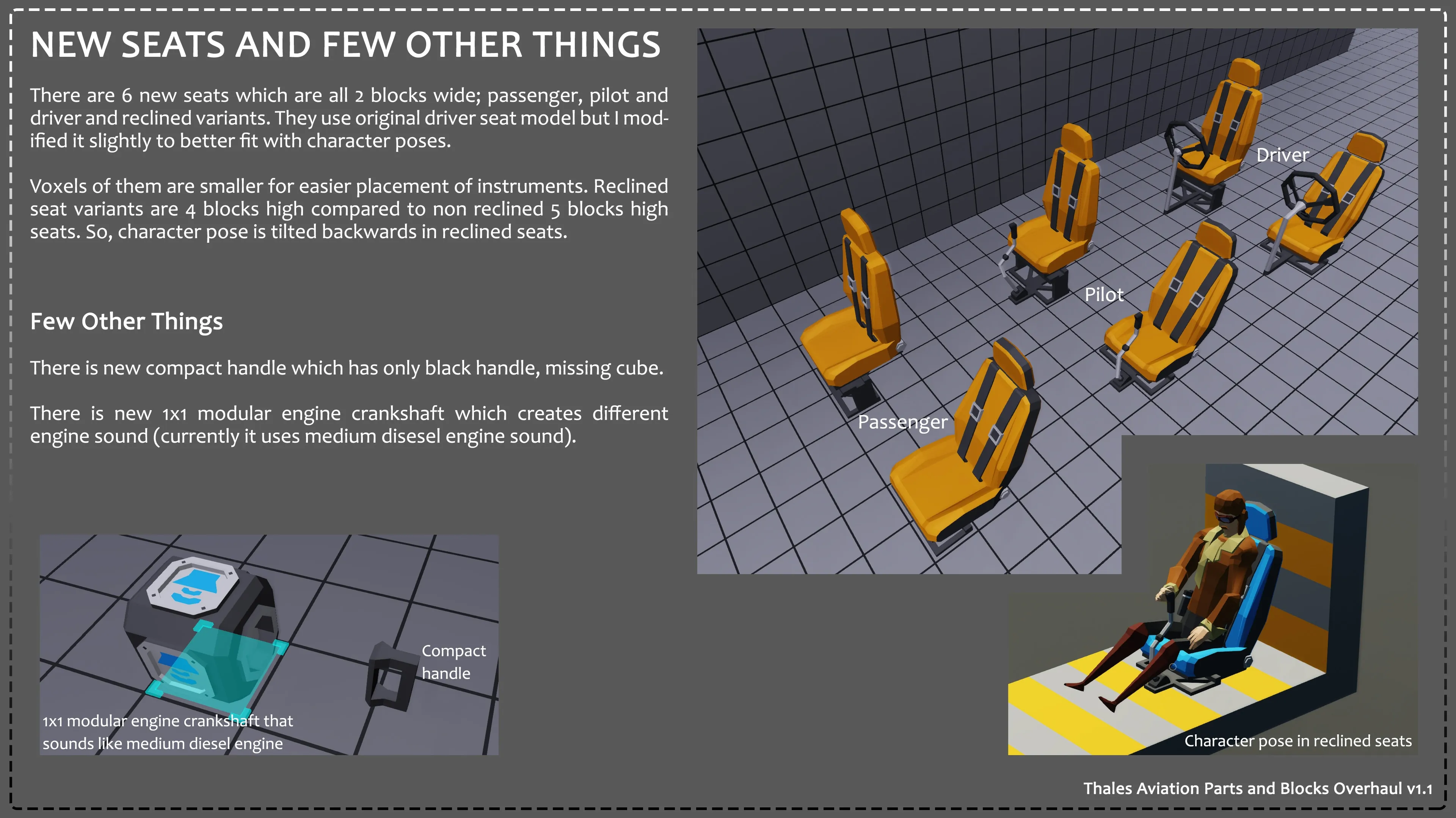 This mod adds 250+ new parts. It does not change or overwrite any original files or any other mod files. Showcase of the modded parts: [url=https://steamcommunity.com/sharedfiles/filedetails/?id=2559118160]https://steamcommunity.com/sharedfiles/filedetails/?id=2559118160[/url]