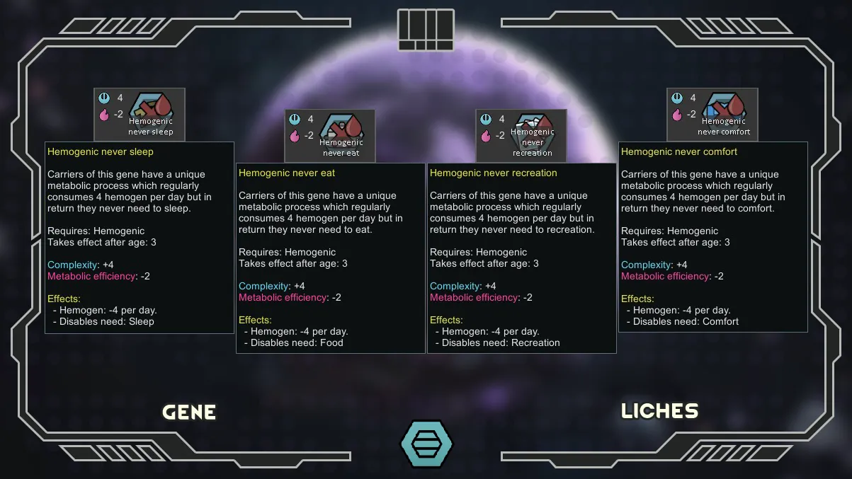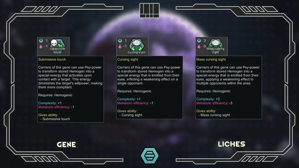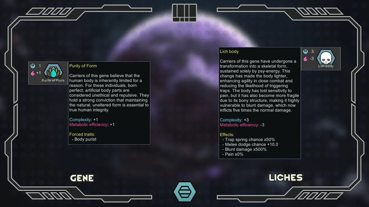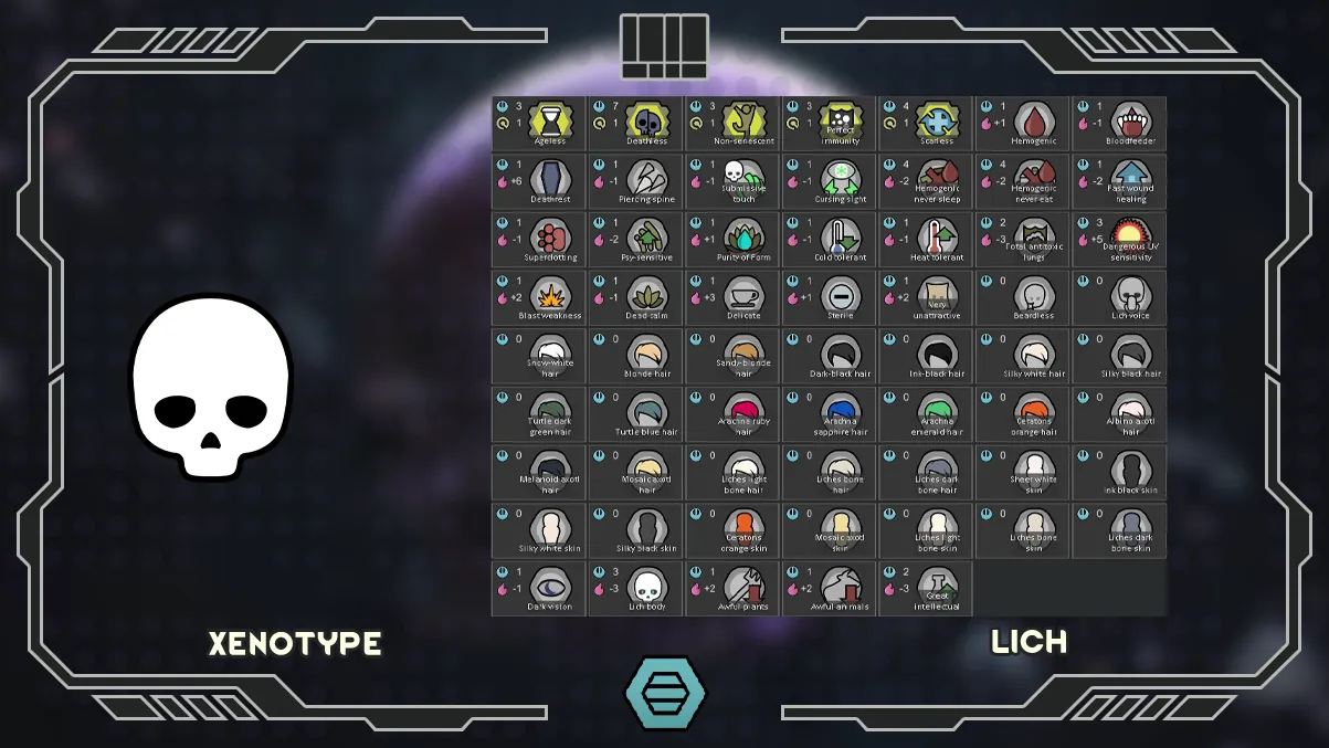 The main innovation of the mod is the Liches xenotypes, from the planet Obsidia.