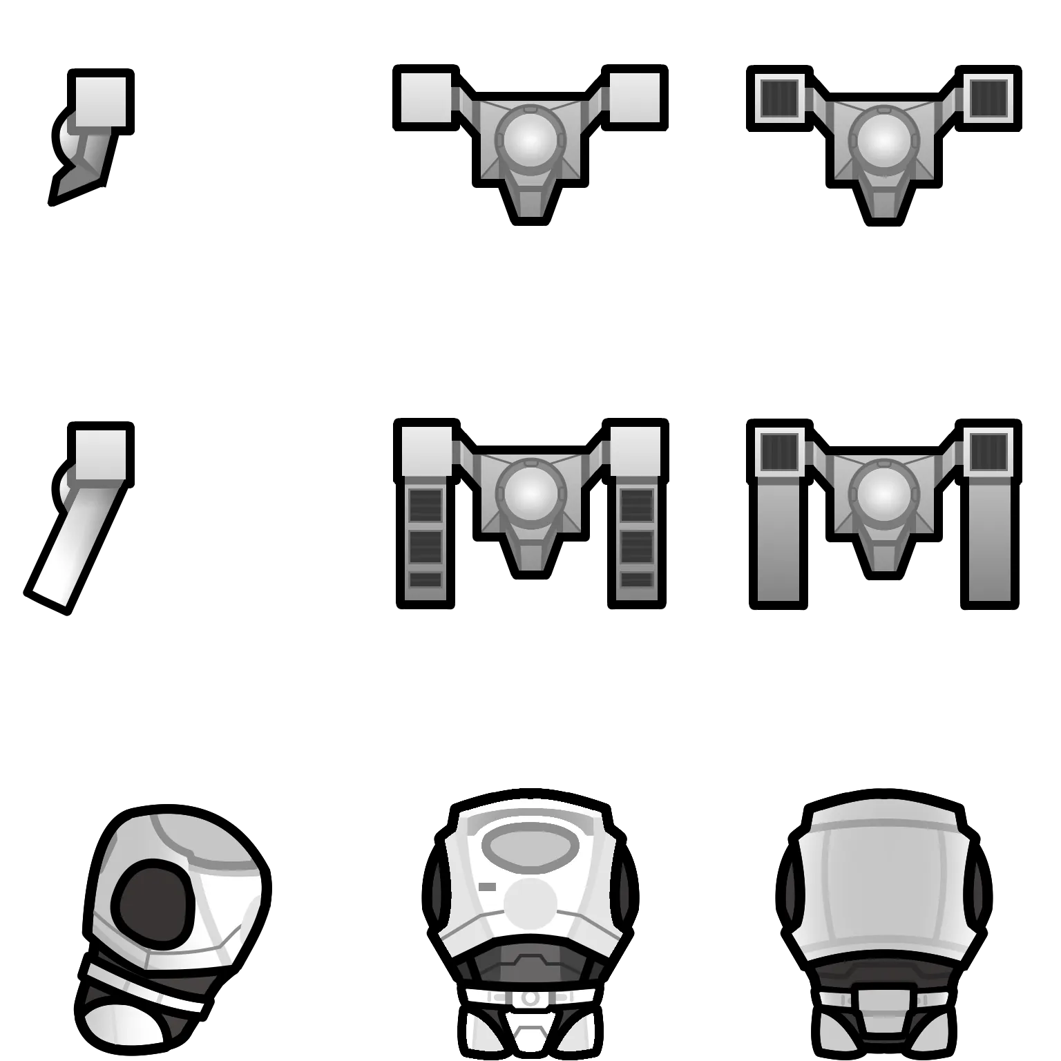 Includes Torso, Shoulderpads, Backpack and three helmets (Simple, Antenna and Rangefinder)