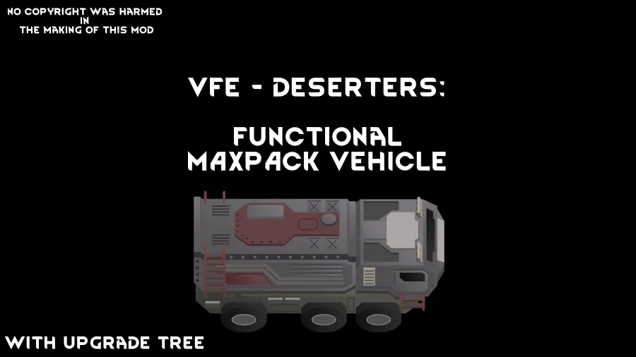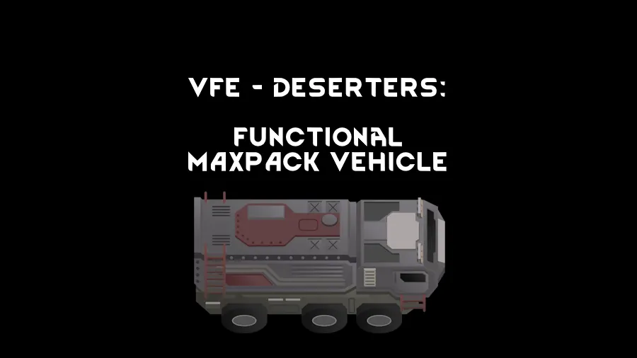 Adds a buildable and drivable version of the 'Imperial MaxPack' from Vanilla Factions Expanded - Deserters. The vehicle has, extremely, limited colouring options and no visual upgrades, but it does have upgrades.