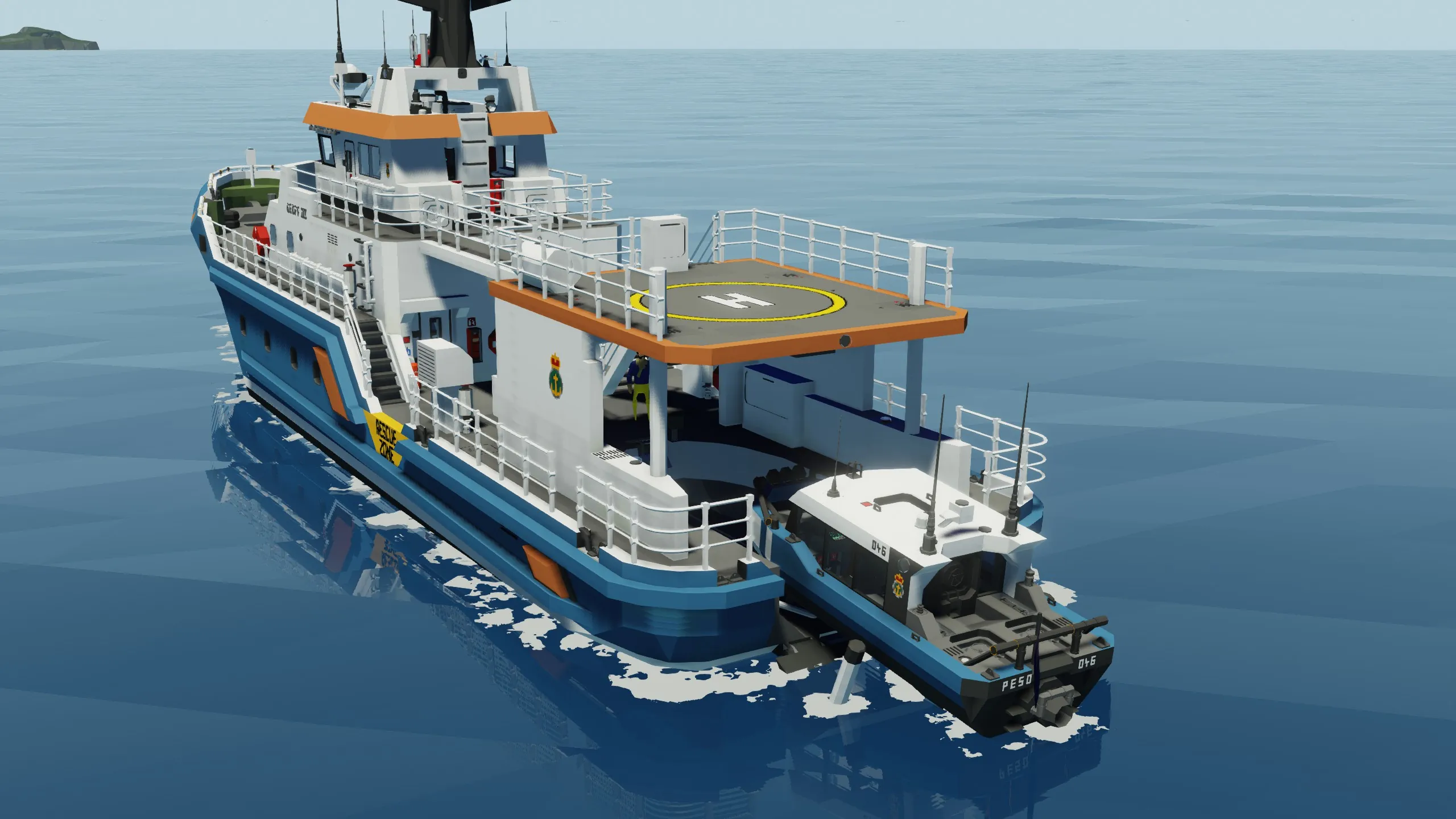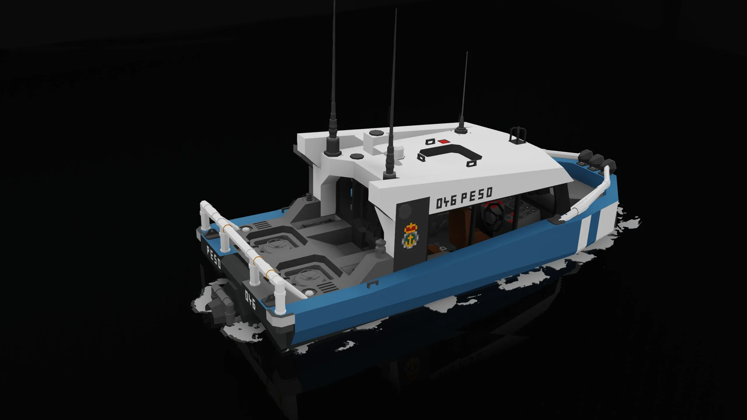 The PESO is a small jet boat designed to fit with my upcoming large SAR ship. she is fast, manoeuvrable and features a sealed cabin with roll over recovery.
