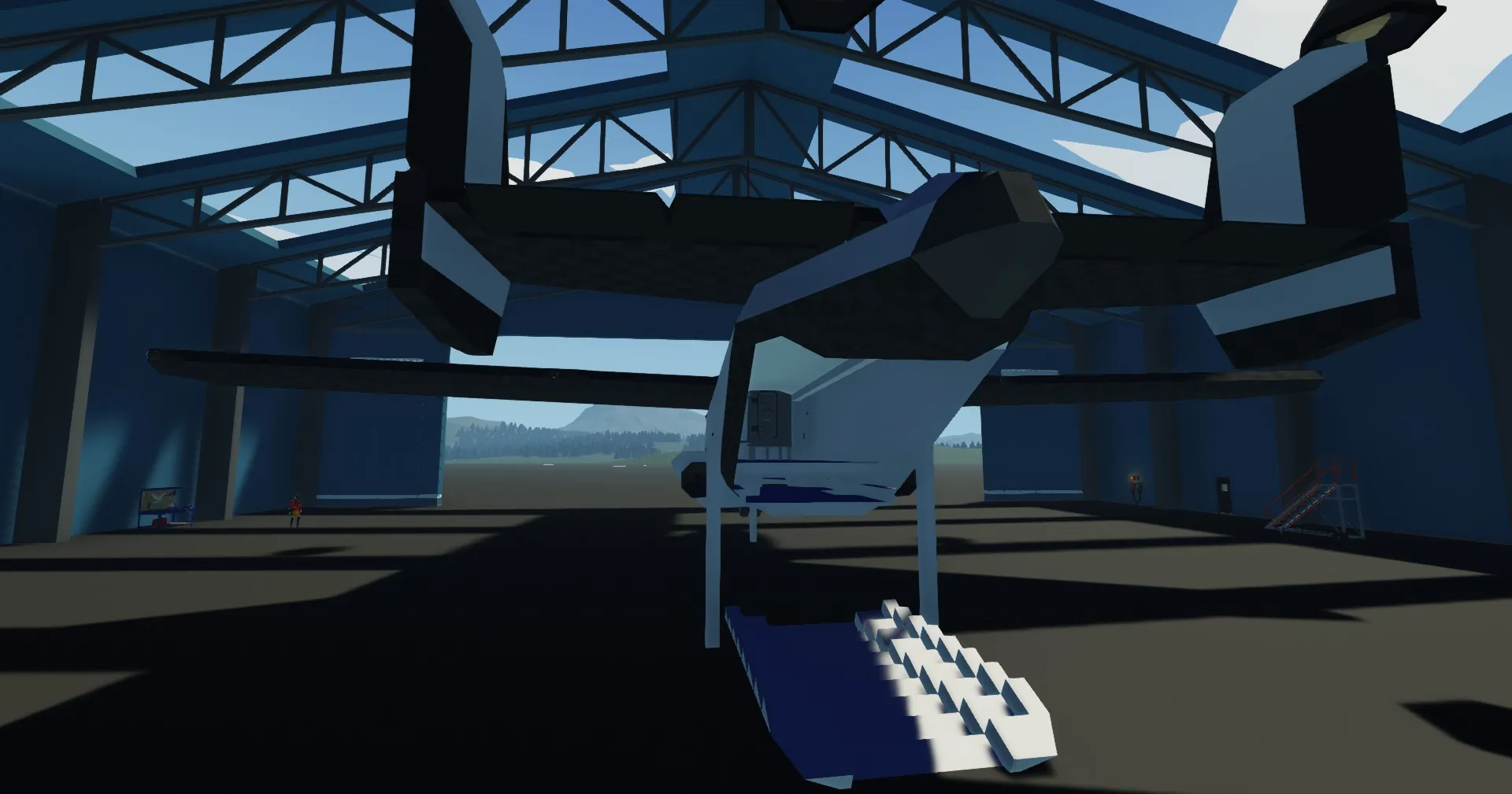 UNFINISHED PLEASE BE PATIENT FOR UPDATES! Not my first space craft but its my first space plane. Has a cockpit with seats for a Commander, Pilot, Flight Engineer, and Load Master. V.1.0 Features include a docking port (Needs logic done and buttons), an airlock for EVAs and other shenanigans, a Cargo Bay for satellites and other things, and a nose gear (needs logic done too). Also please note that the Cargo door falls off when spawned in. This is because it isn't connected to anything. Also note that its currently on struts and is not capable of flight just yet. Thanks and enjoy!!!