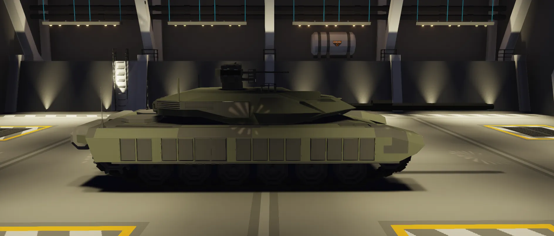 The T-102V Typhoon is a cutting-edge evolution of the Typhoon line — a medium main battle tank (MBT) based on the principles of German excellence, taking design cues from the Leopard 2A7V and then pushing beyond. Designed for high-threat environments, it features next-gen protection, full combat autonomy, and overwhelming precision.