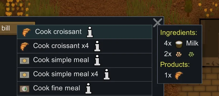 There are two recipes that require Milk and Eggs for either a single croissant or 4 at once.