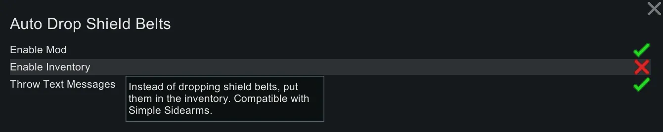 [*] Compatible with the [b]Simple Sidearms[/b] mod, as long as the [b]"EnableInventory"[/b] setting is enabled in the Mod Settings.