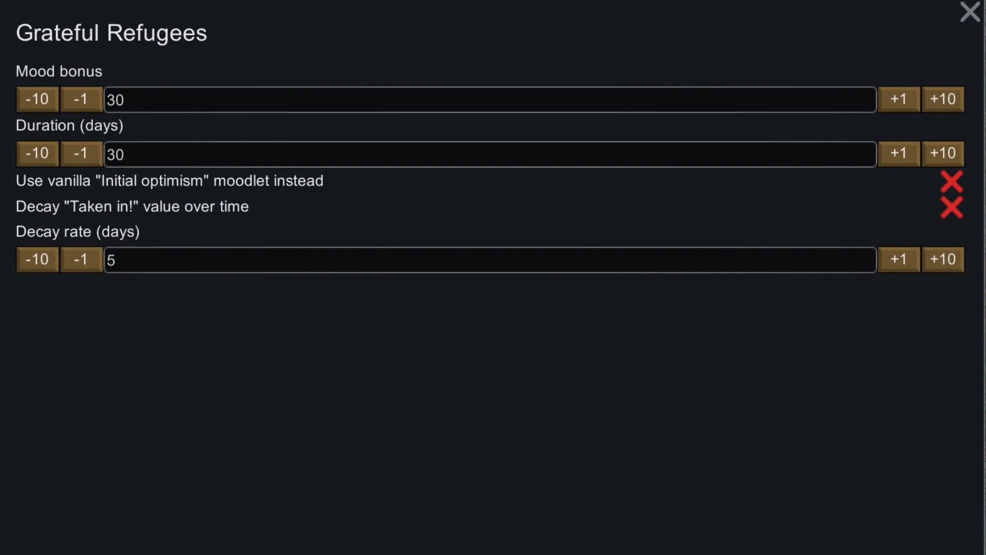 Gives taken in refugees a +30 moodlet for the duration of their stay.