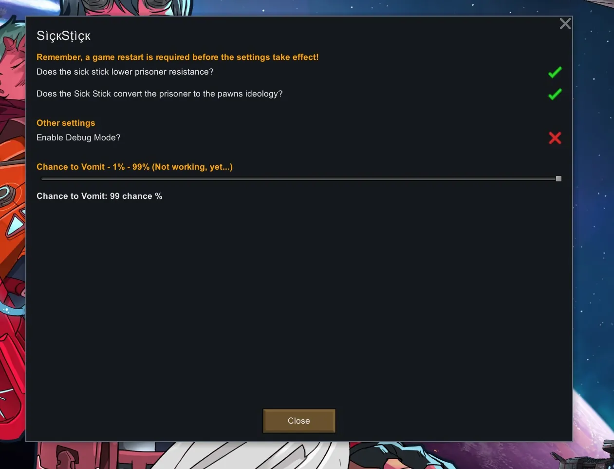 GitHub - [url=https://steamcommunity.com/linkfilter/?u=https%3A%2F%2Fgithub.com%2FWebslug%2Fslugrwmods%2Fblob%2Fmain%2FSIckStick_Rimworld15.zip]https://github.com/Webslug/slugrwmods/blob/main/SIckStick_Rimworld15.zip[/url]