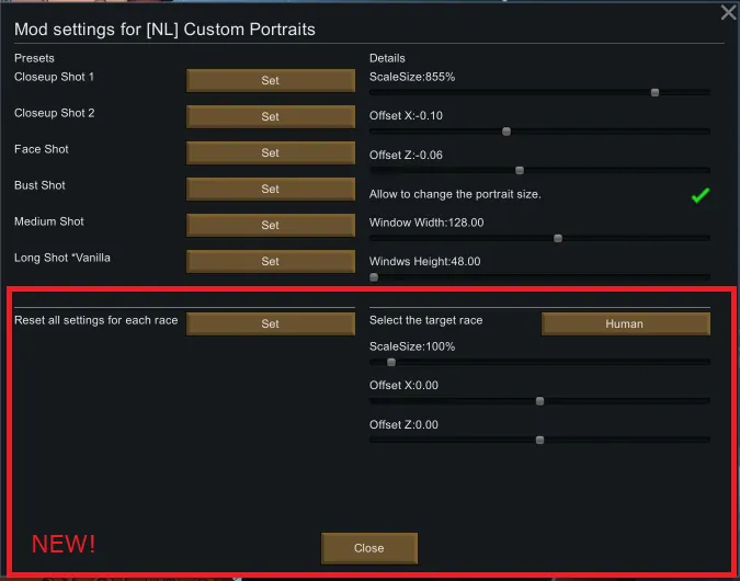- Added new mod settings due to adjust each race's offsets and scale.