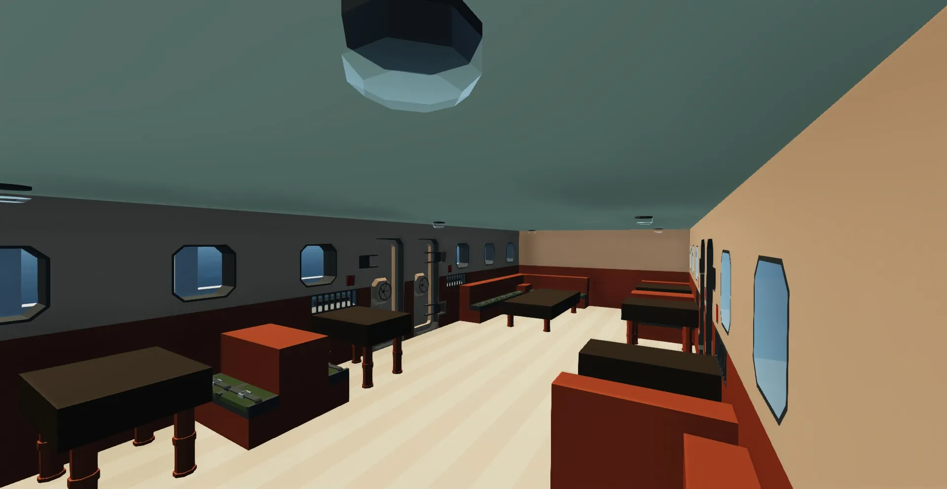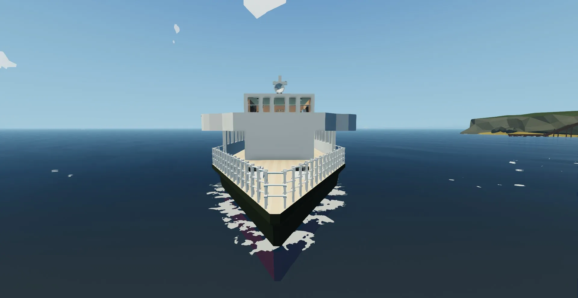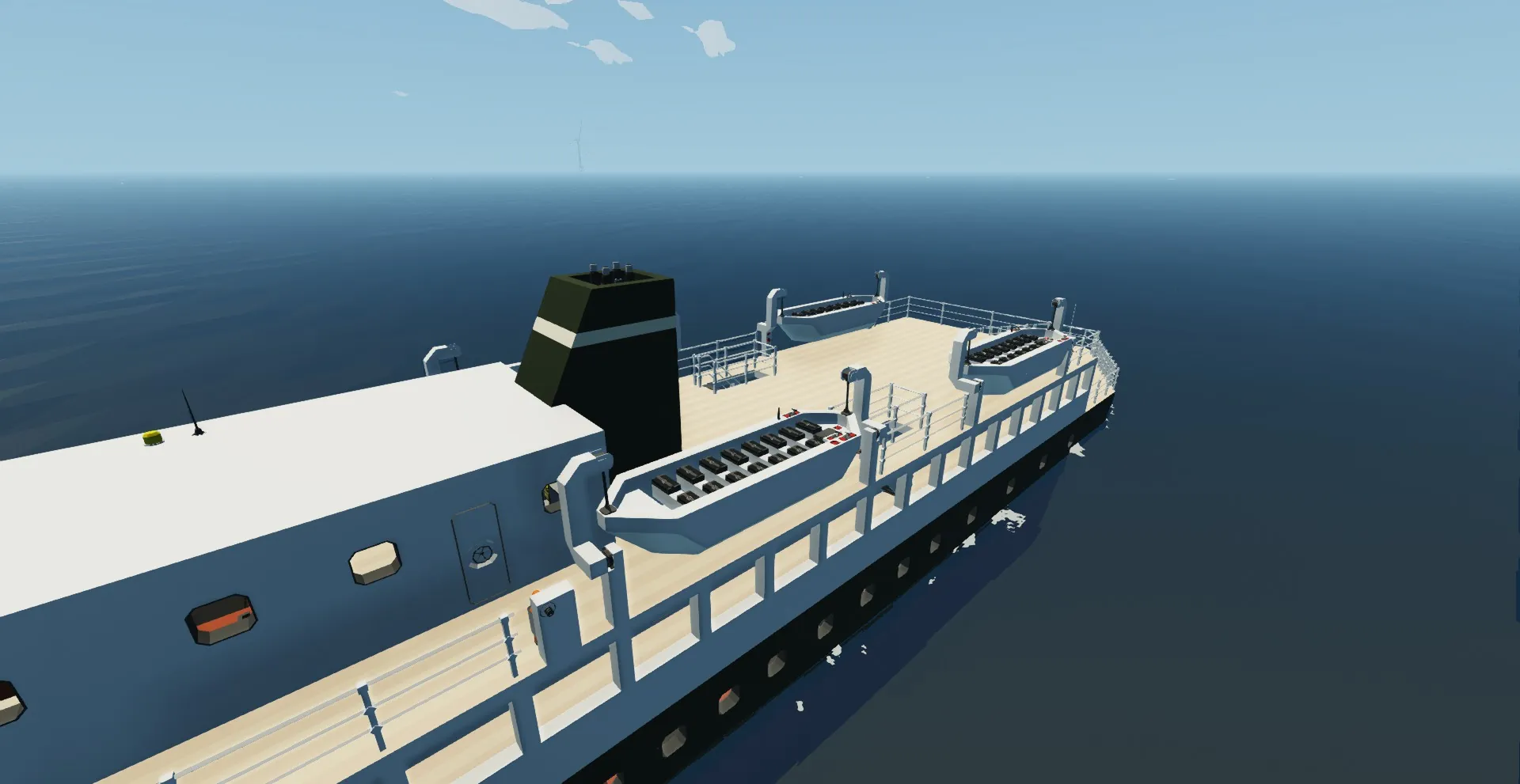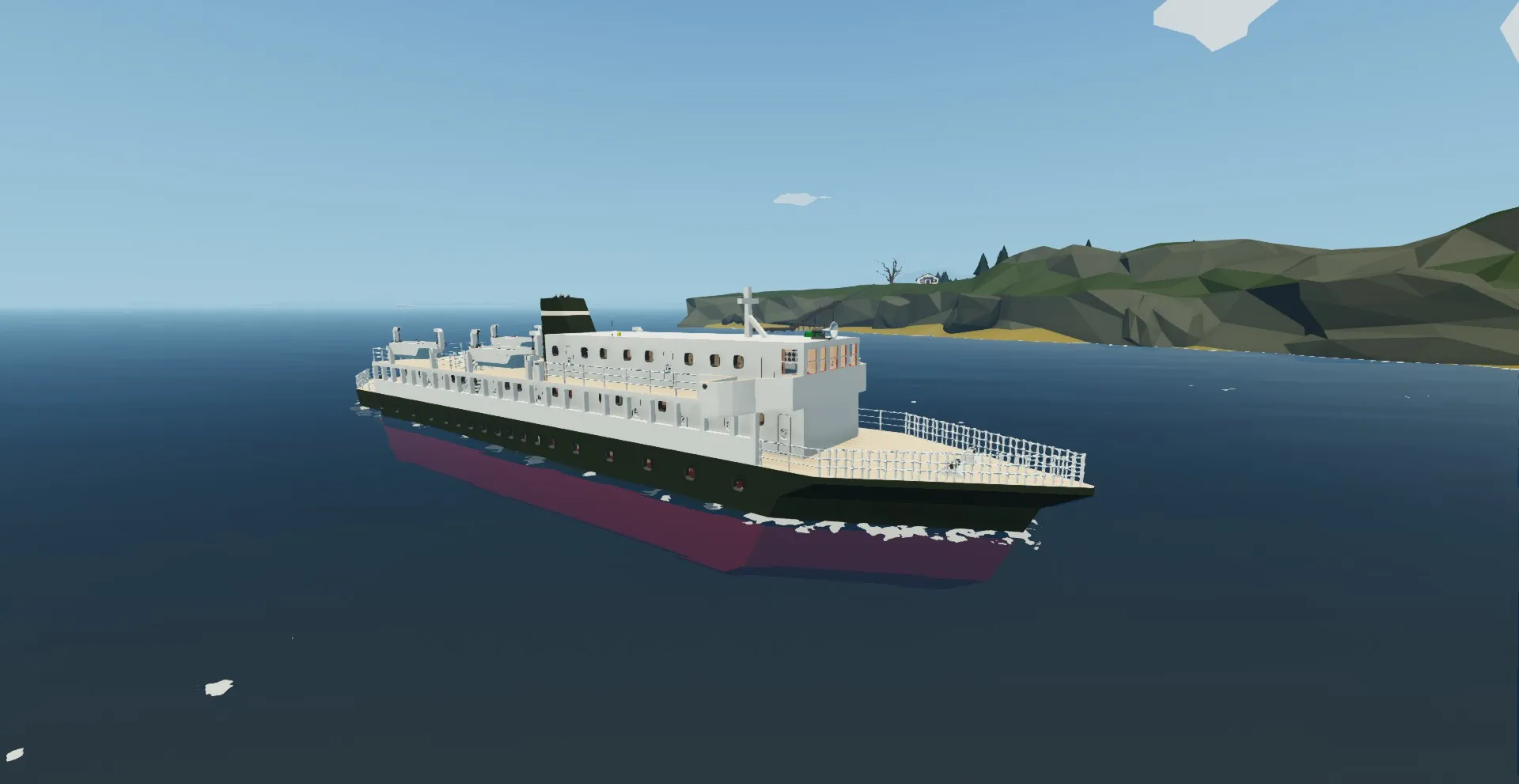 This is the first ship I've built. It is intended to be a passanger-cargo ferry with more of an emphasis on the passanger part. It's amenities include a Lounge, bar, dining room, kennel and space for about 40 passengers. It also has 4 lifeboats and heaters in almost every room.