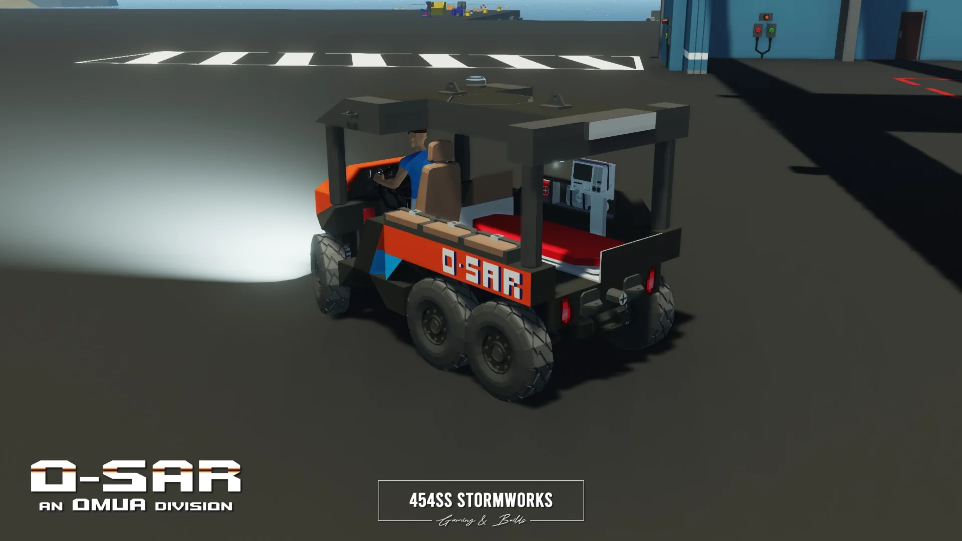 This unit is owned by O-SAR, the Search and Rescue division of OMUA, and is outfitted for lifesaving missions. It features medical gear, a medical bed and other life saving equipment. The 'ADV' designation is given to O-SAR vehicles that are "Air Deployable Vehicles", meaning they have a roof mounted parachute for air deployment, as well as other adjustments for easy deployment.