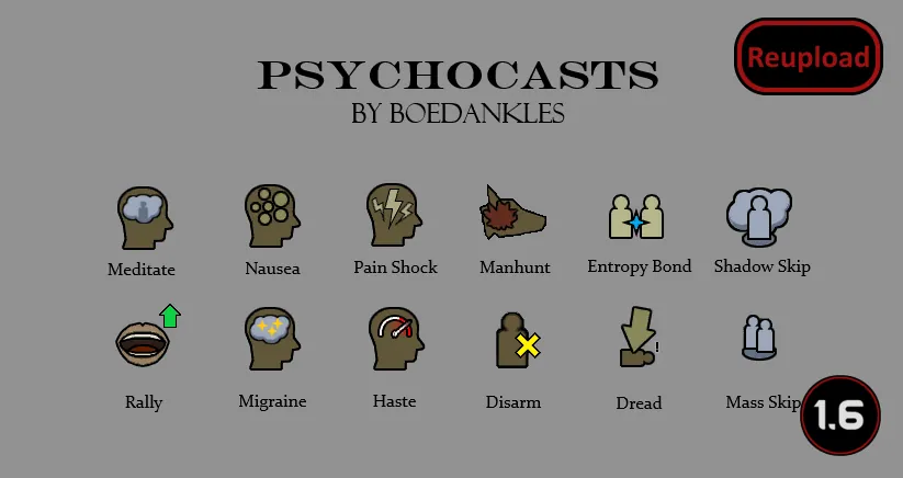 This mod expands psycast abilities by adding a variety of new psycasts, and as well as a few minor changes to a few existing casts to improve their function. This mod adds 12 psycasts so far, I may add more in the future but for now I think this is more than enough combined with the game's original psycasts. I tried to include pretty even spread of buffs, debuffs and control abilities, here, and I think I did a good job of keeping them balanced as to not overshadow existing abilities. However, if you think any abilities might require additional balancing, let me know and I may look into it. Also, If you wish to suggest more abilities, they may be made into a separate mod, depending on the suggestions.