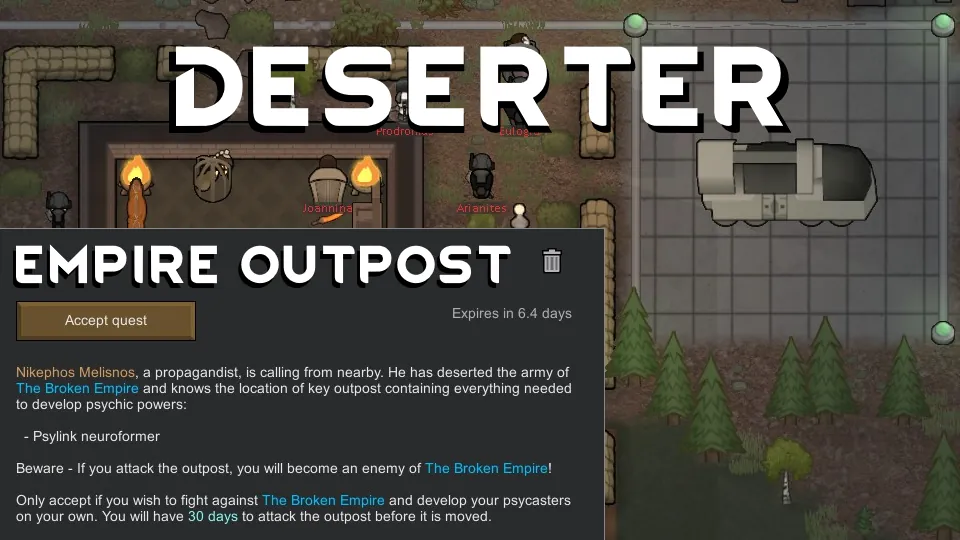 Add a repeatable quest to raid Empire outposts and loot psylink.