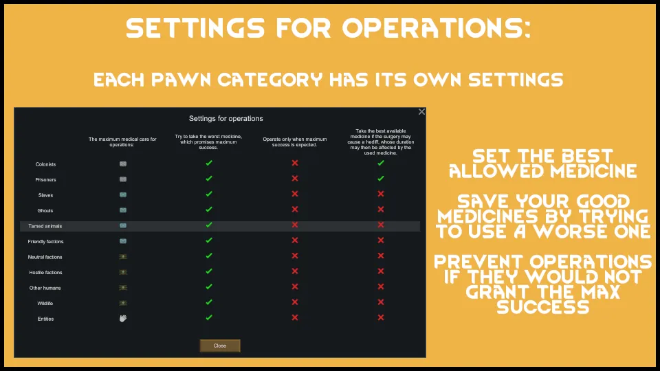[*] [b]Operations:[/b] Specify which medicine may be used for operations and two additional options.