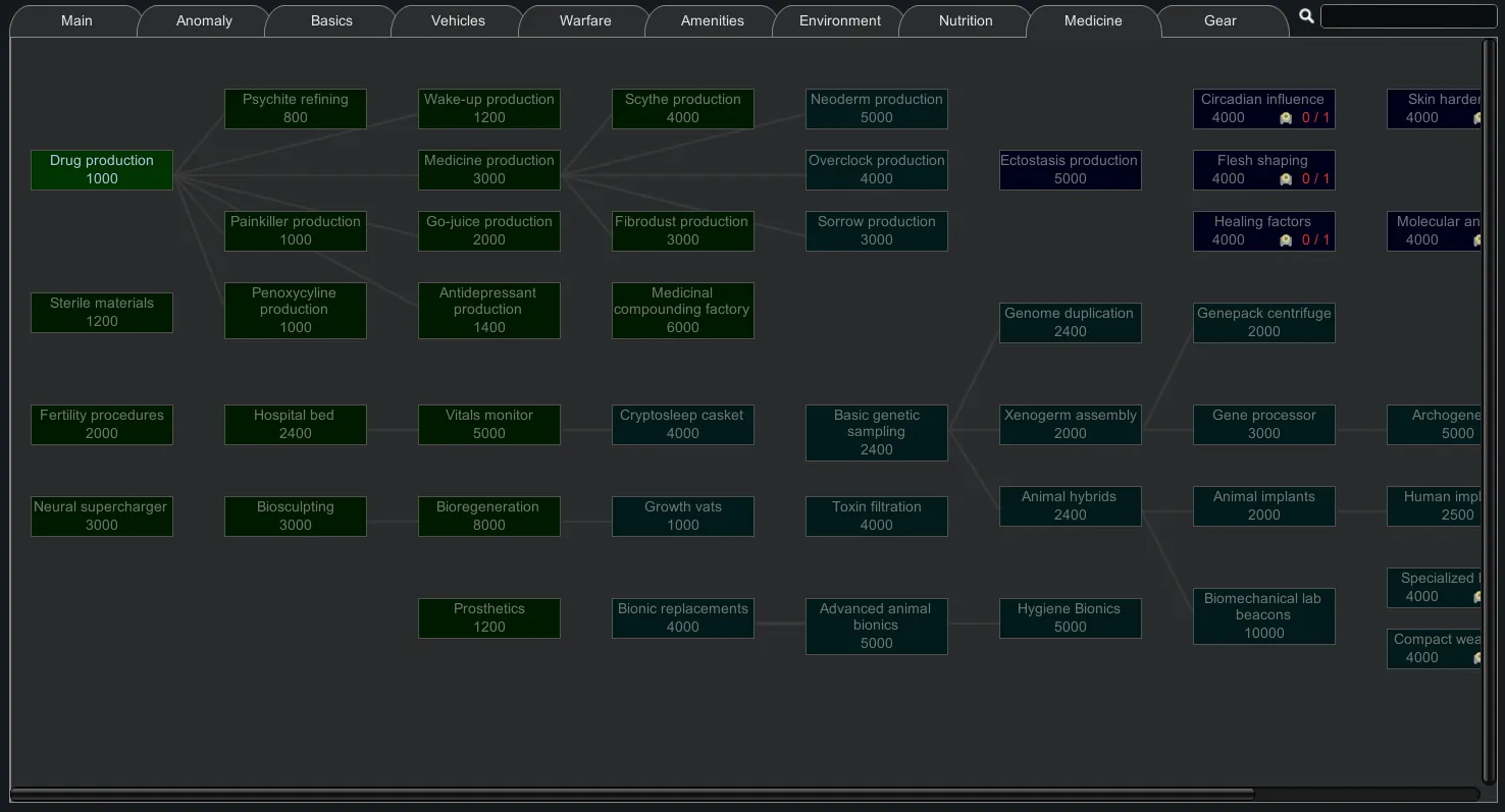 Additionally, this mod adjusts some research prerequisites and add an optional patch (you can turn it on from the settings) to changes the research costs for technologies introduced by Vanilla Faction Expanded - Classical.