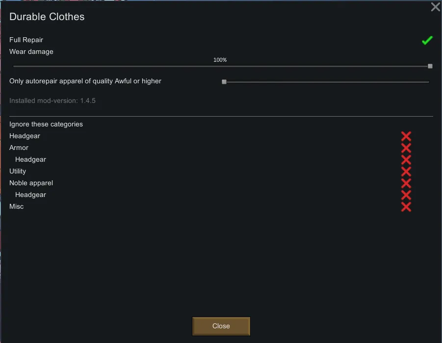 [url=https://steamcommunity.com/sharedfiles/filedetails/changelog/2015395963][img]https://img.shields.io/github/v/release/emipa606/DurableClothes?label=latest%20version&style=plastic&color=9f1111&labelColor=black[/img][/url] | tags: wear and tear