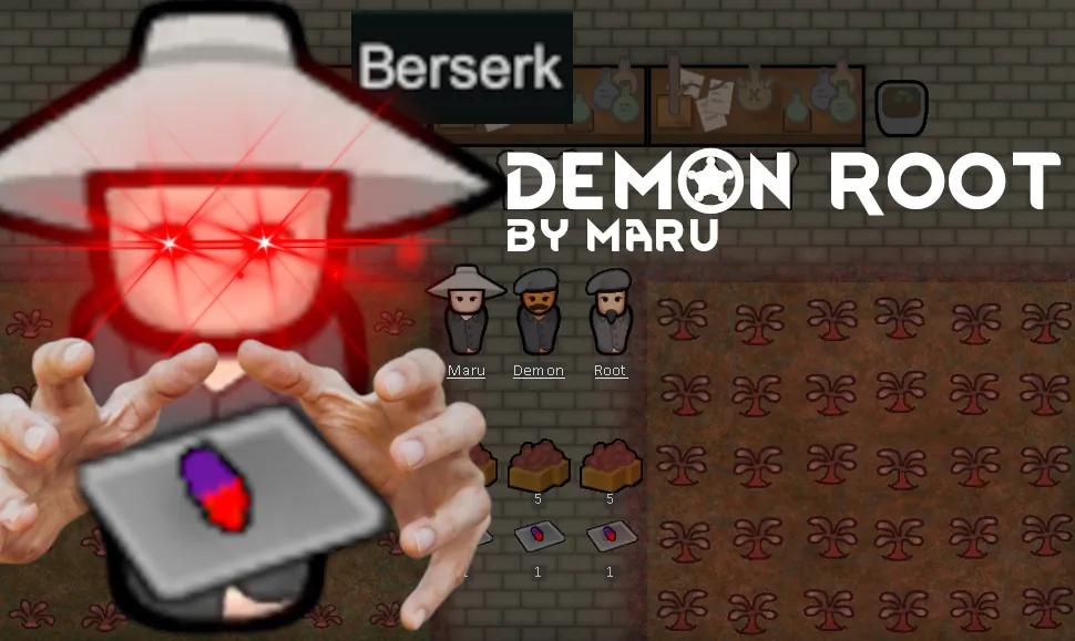 The mod adds a new "Demonroot" drug, plant, and research. The Demonroot drug sends the pawn into a battle trance, providing a major increase to all stats at the cost of a short duration and imminent death when the drug's effects wear off.