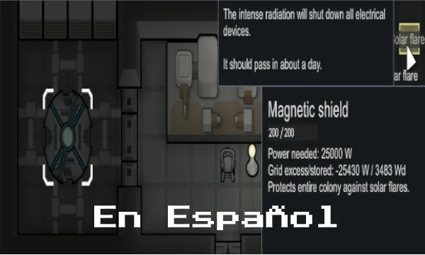 este mod agrega un escudo magnetico que hace que las tormentas solares no afecten los electrodomesticos de la colonia.