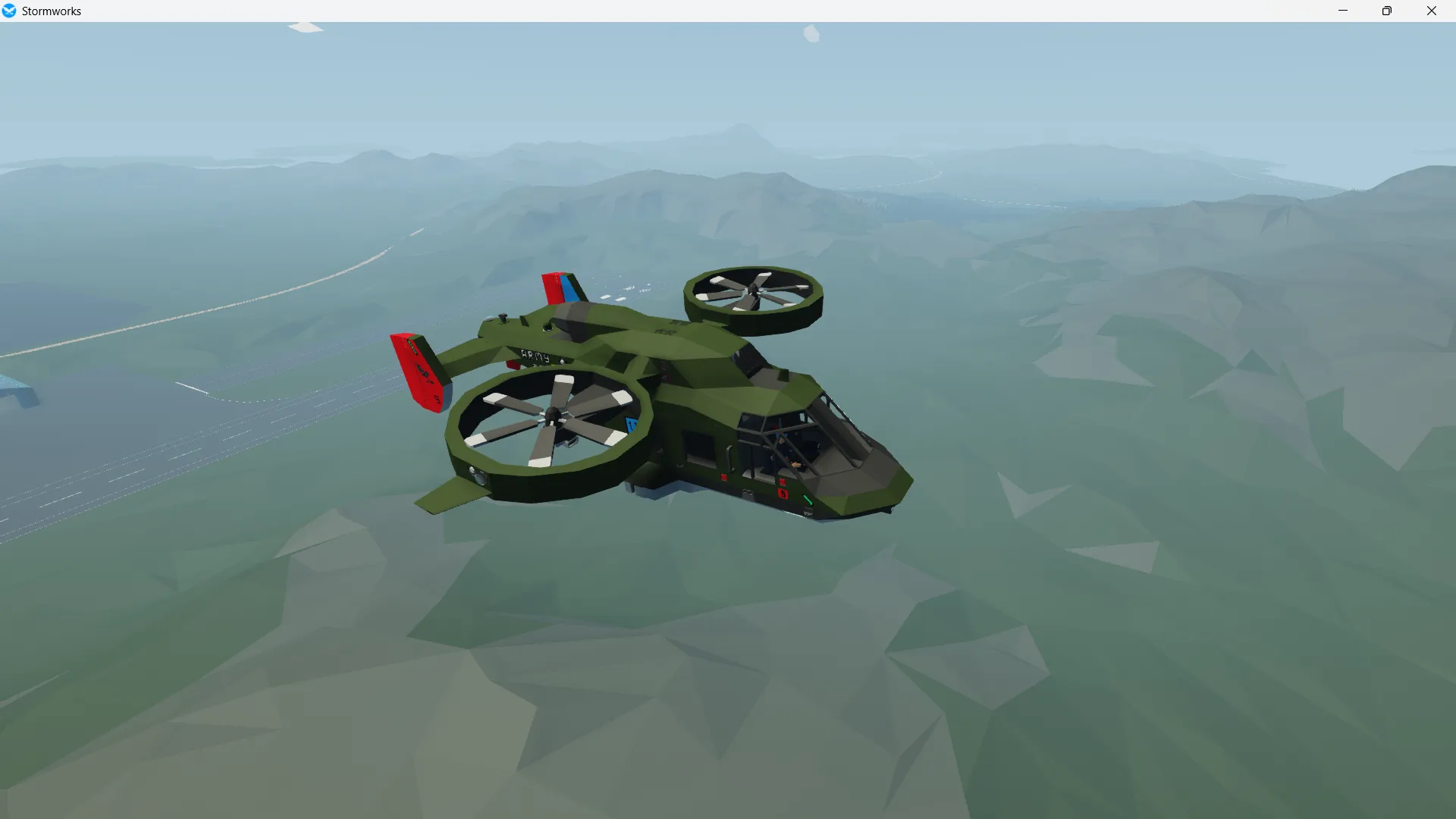 The Karak is the primary light utility helicopter of the Alantian army and marines and follows the same titrotor design as the Aquilla and the Vespid. its jet engine pushes it easily above 100 knots and its titrotors allow it great manoeuvrability. designed for light troop transport and scout duties, the Karack is adaptable and effective as a go to light aircraft for alantias needs.