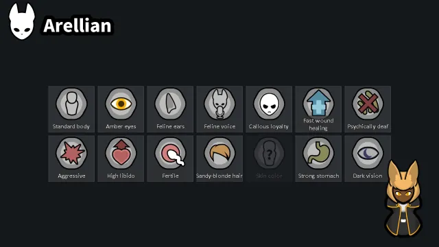 Arellians will judge people for their faction and xenotype. They will love comrades and Arellians while hating outsiders and xenos. Thanks to their Callous Loyalty gene, Arellians will never feel bad for killing outsiders (beggars, prisoners, etc...) and observing corpses.