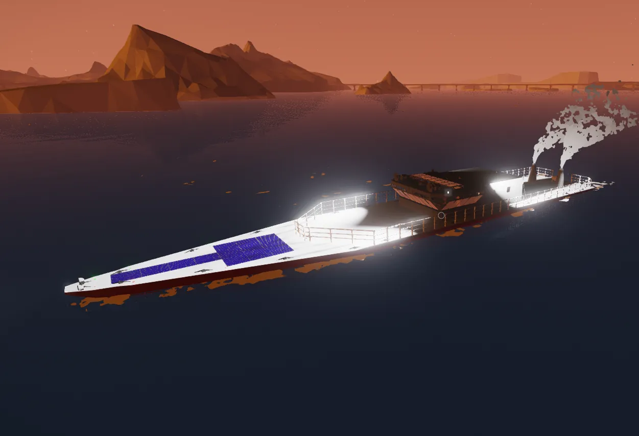 The Arctic Express vechicle is a medium-sized hybrid vessel capable of going from the Main Island to the Arctic or 4 hours of continous work of the engine. It has a capacity of 14 people, 10 passangers for short routes and 4 crew members.