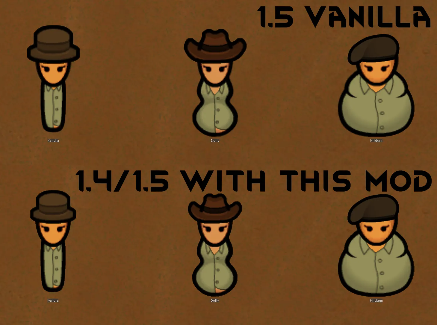 1.5 removed the head apparel scaling for pawns with narrow head types. I didn't like that, so I put it back in via this simple mod. I made this for my Madness Pawns mod, but decided to make it into its own mod since I think that this is a really bad move on Ludeon's part.