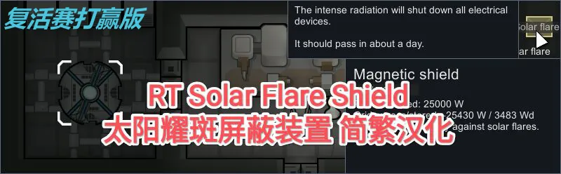 本mod为[url=https://steamcommunity.com/sharedfiles/filedetails/?id=728315620][b] RT Solar Flare Shield [/b][/url]的非官方简繁汉化包。