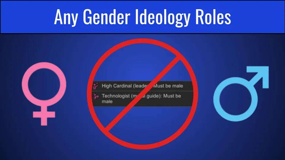 This is a simple XML Patch which removes a single line making it so there is no "Supreme Gender" requirement for roles. As a result, religions with the Male or Female Supremacy meme can have roles with the non-supreme gender.