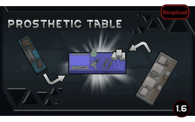 Removes prosthetic recipes from the [b]machining table[/b] and [b]fabrication bench[/b] and puts them into a new workbench. Useful to make your long list of bills less cluttered.