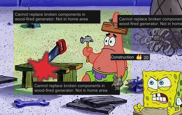 Pawns can now repair components of broken buildings outside of the Home Area.