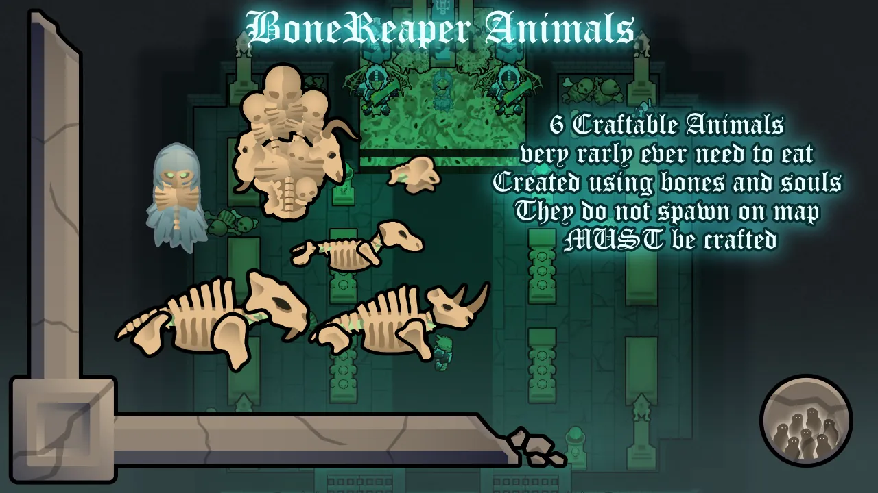 5 craftable animals that all come in random variations, more with the Lightless Empyrean biome mod enabled.
