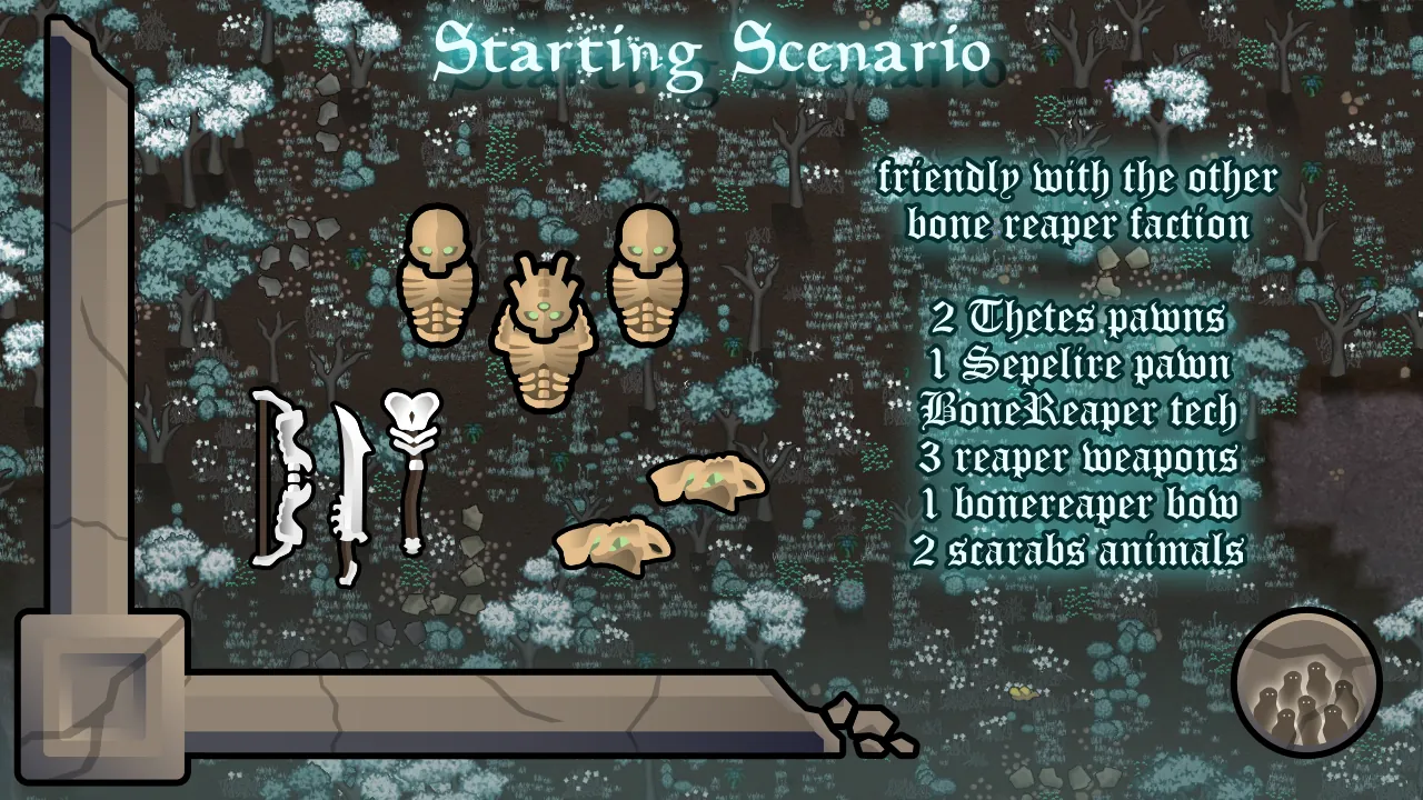 The best way to use this mod though is to BE the BoneReapers and enjoy the greater things in death. As a bone reaper, you will be harvesting the rimworld for bones and souls to make the most splendid colony that only the dead can truly appreciate. Which they should appreciate since the whole colony was made FROM them, truly the greatest form of recycling.