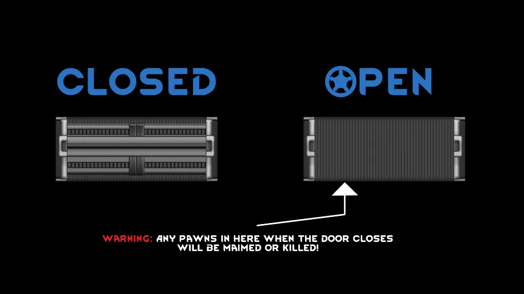 Will crush any pawns inside when it closes.