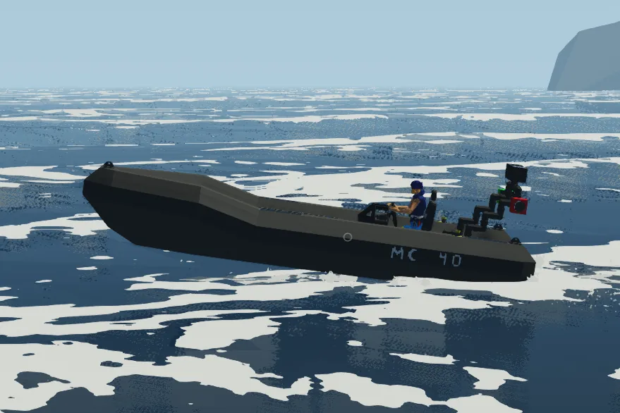The MC RHIB-40 is a compact, reliable short-range RIB designed for simplicity and ease of use. Built by The Mareno Corporation, it is ideal for quick missions, crew transport, and support roles. The vessel has seven seats for crew and passengers and is powered by six batteries, keeping it lightweight, though this means it does not have a long range or extended battery life. The MC RHIB-40 uses simple logic only, with no microcontrollers, and comes equipped with navigation lights for port and starboard, as well as a spotlight for visibility.