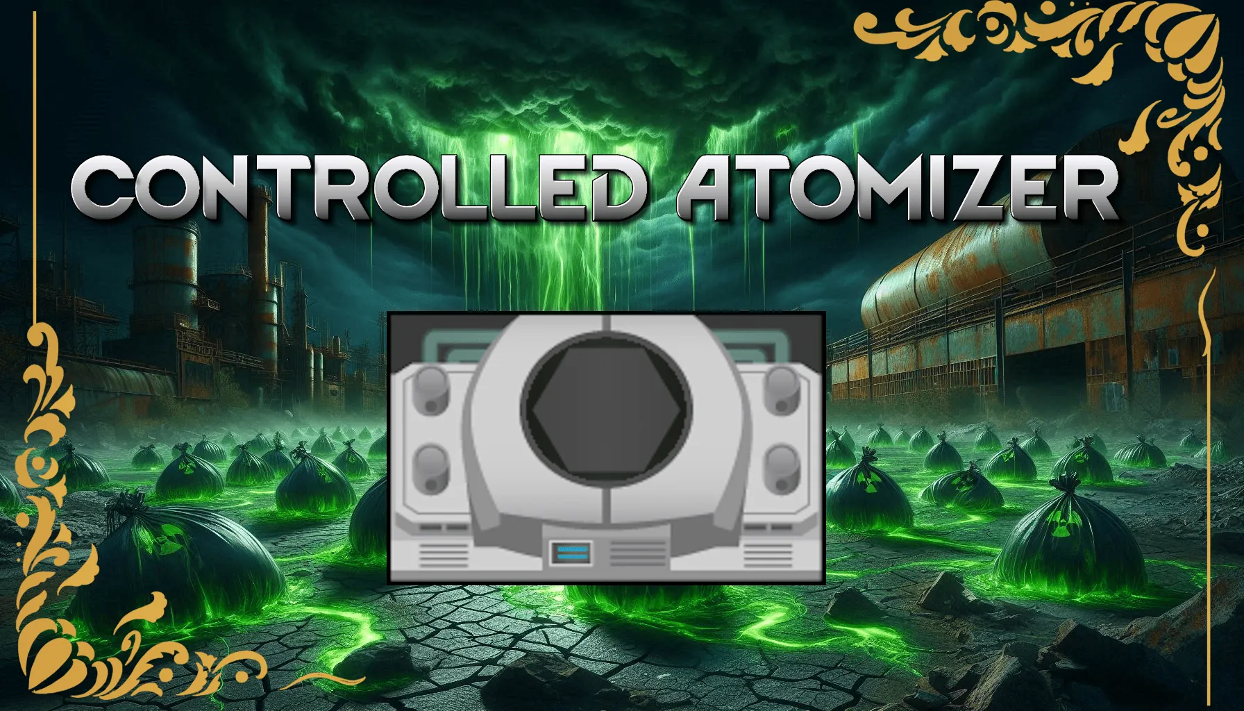 "Attention, survivors of the wasteland! The Controlled Atomizer is here to take your waste management to the next level. Forget the old ways of reckless consumption—this isn’t about reinventing the atomizer; it’s about refining it. With precision-tuned controls, you now have the power to modify consumption rates, atomization speed, and energy efficiency. In a world where every watt counts and every second is borrowed time, the Controlled Atomizer stands as your beacon of hope.