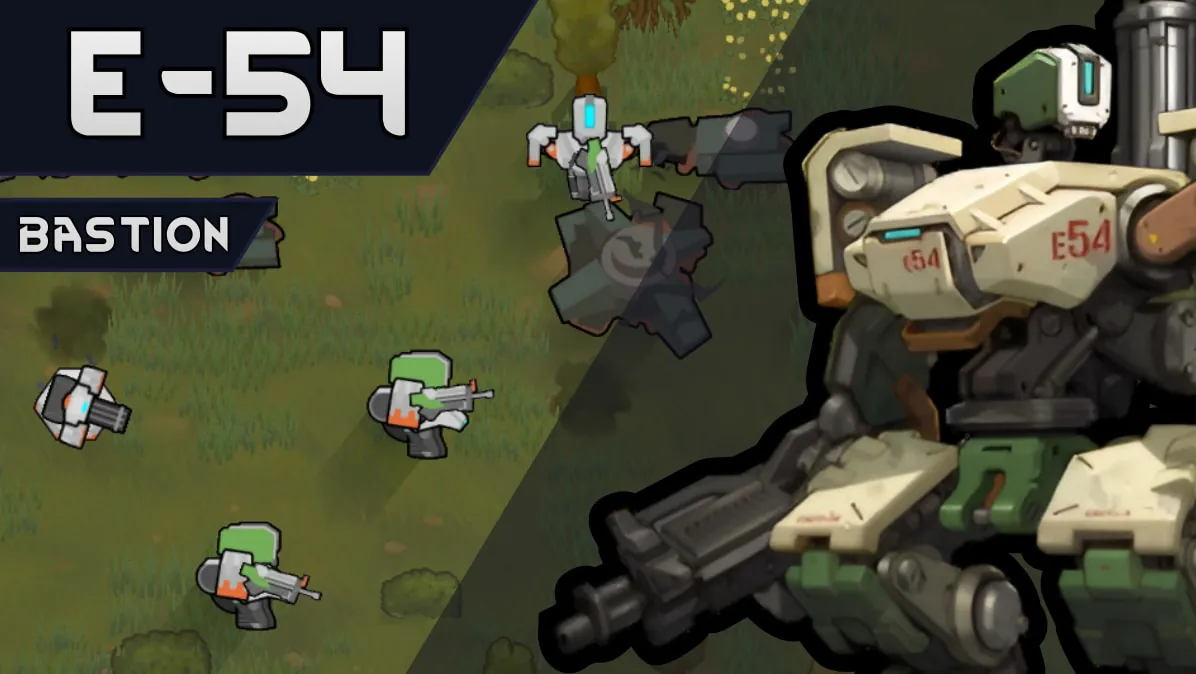 Bastion is very hardy and can take a lot of punishment. Has an ability that turns itinto a stationary turret with high firerate. Also has a self-repair ability with a cooldown.