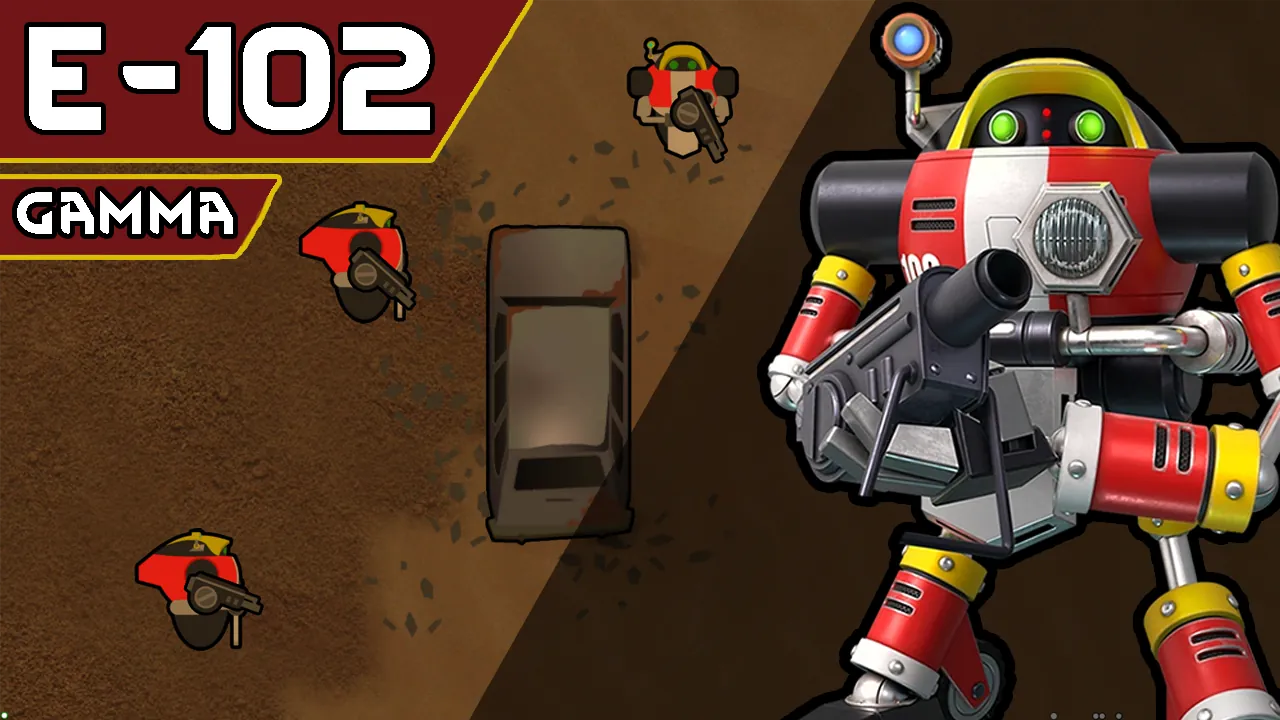 Gamma is less suited for open confrontation because he sacrifices armor for mobility, comes equpped with a built-in jump pack that allows it to jump in and out of danger. Comes with a gun that has very high armor penetration, specifically designed to engage mechanoids and other heavily armored objects. Similarly to Bastion, has a self-repair ability with a cooldown.