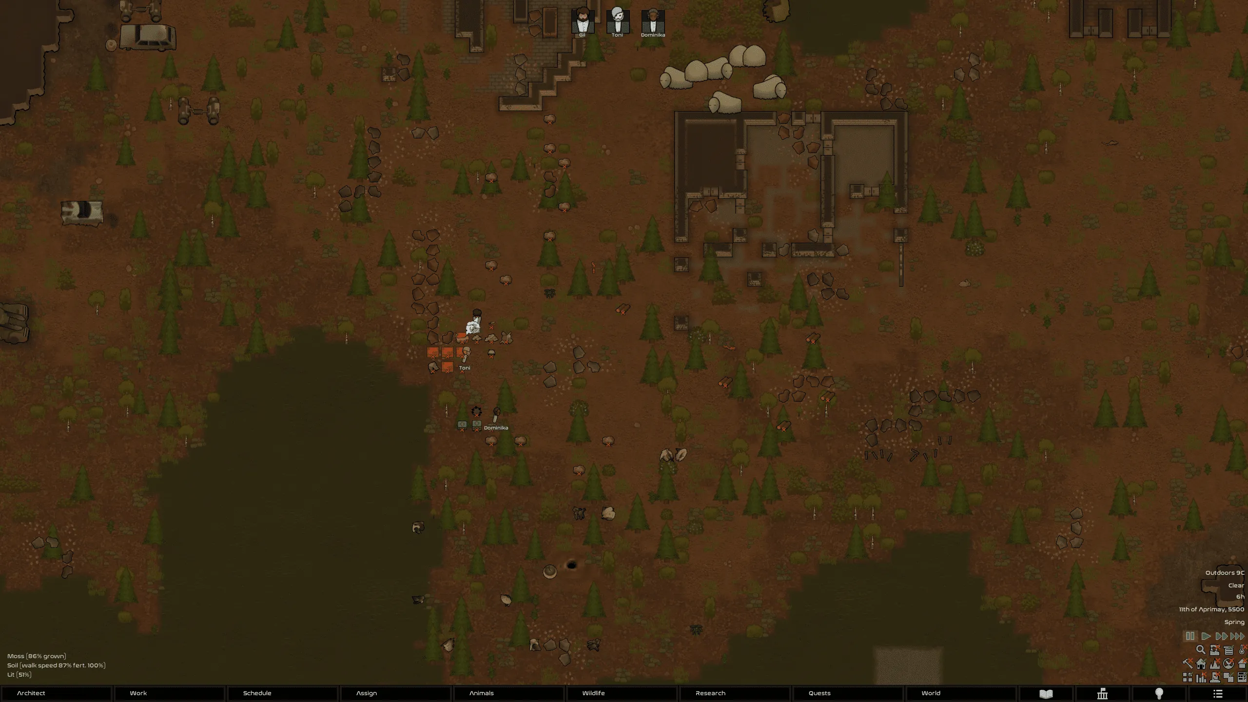 Partial compatibility with "Architect Icons" In the "RimThemes" settings menu, enable "disable particles" - this prevents icons from overlapping in the building menu (this will also disable all similar icons in my theme)