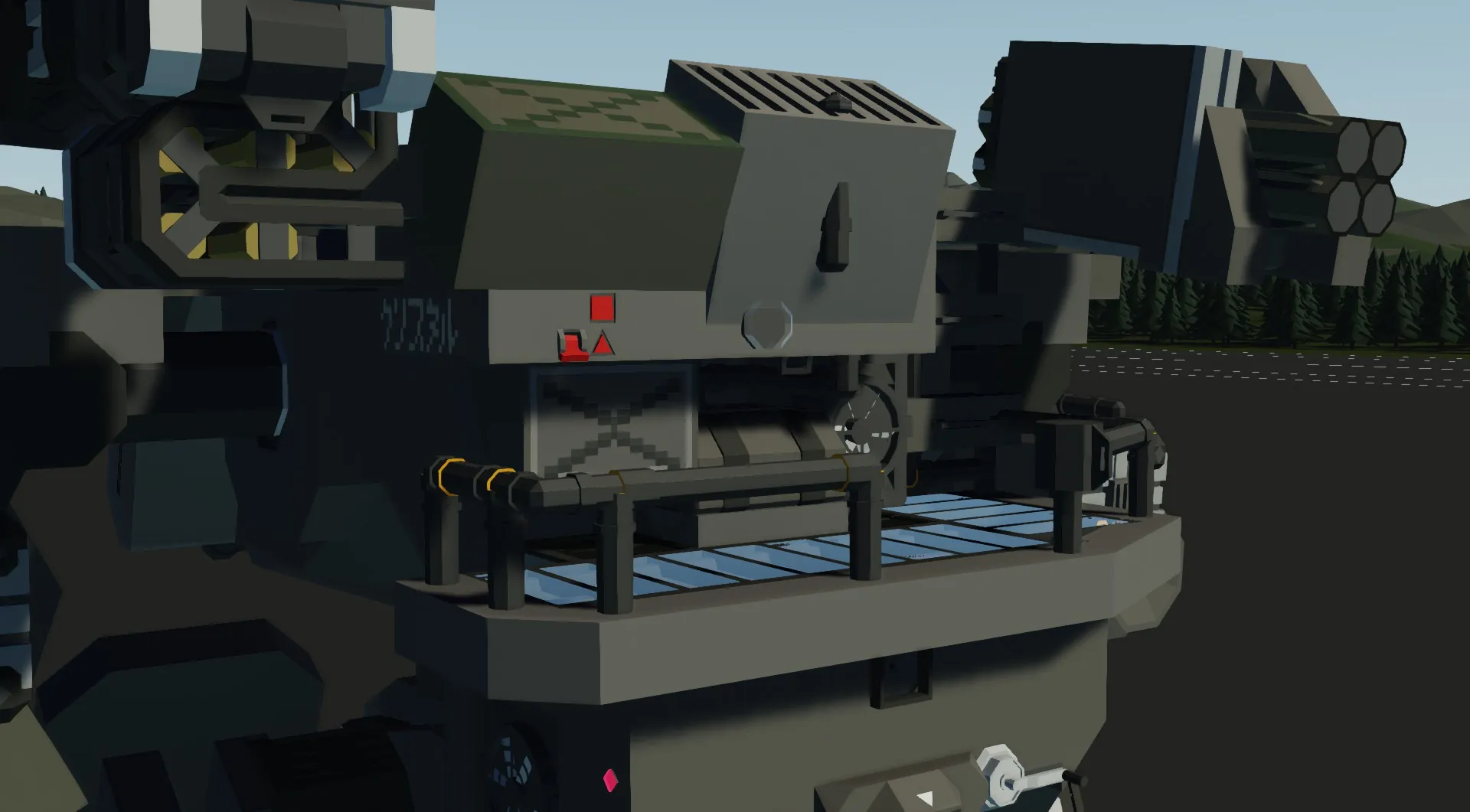 The XM-03 features a dual-cockpit configuration: a forward gunner position directly interfaces with the siege cannon, while the rear pilot station maintains full operational control of the mech's mobility and secondary armaments. Control redundancy allows the pilot to override the siege cannon system if necessary, ensuring uninterrupted mission performance.