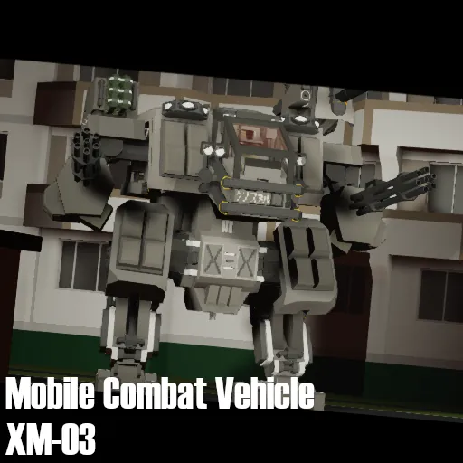 The XM-03 is a next-generation Mobile Combat Vehicle engineered for frontline dominance and siege operations. Standing at 8.35 meters tall, the XM-03 is built on a modular bipedal frame capable of both high-mobility engagements and sustained fire support roles.