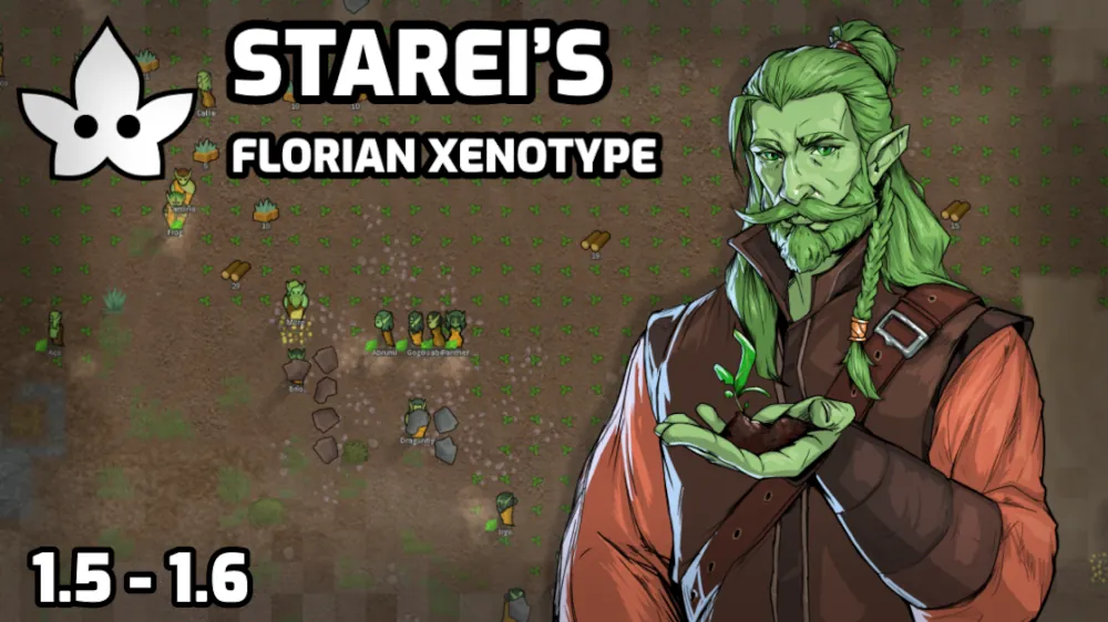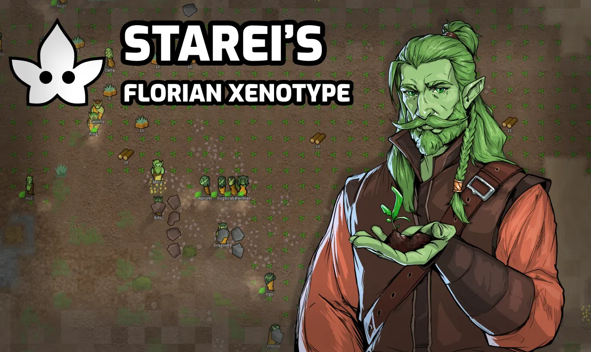 This mod introduces a new xenotype with chlorophyll-green skin, named the Florian. Intended to be simple, lightweight, and as vanilla-style as possible.