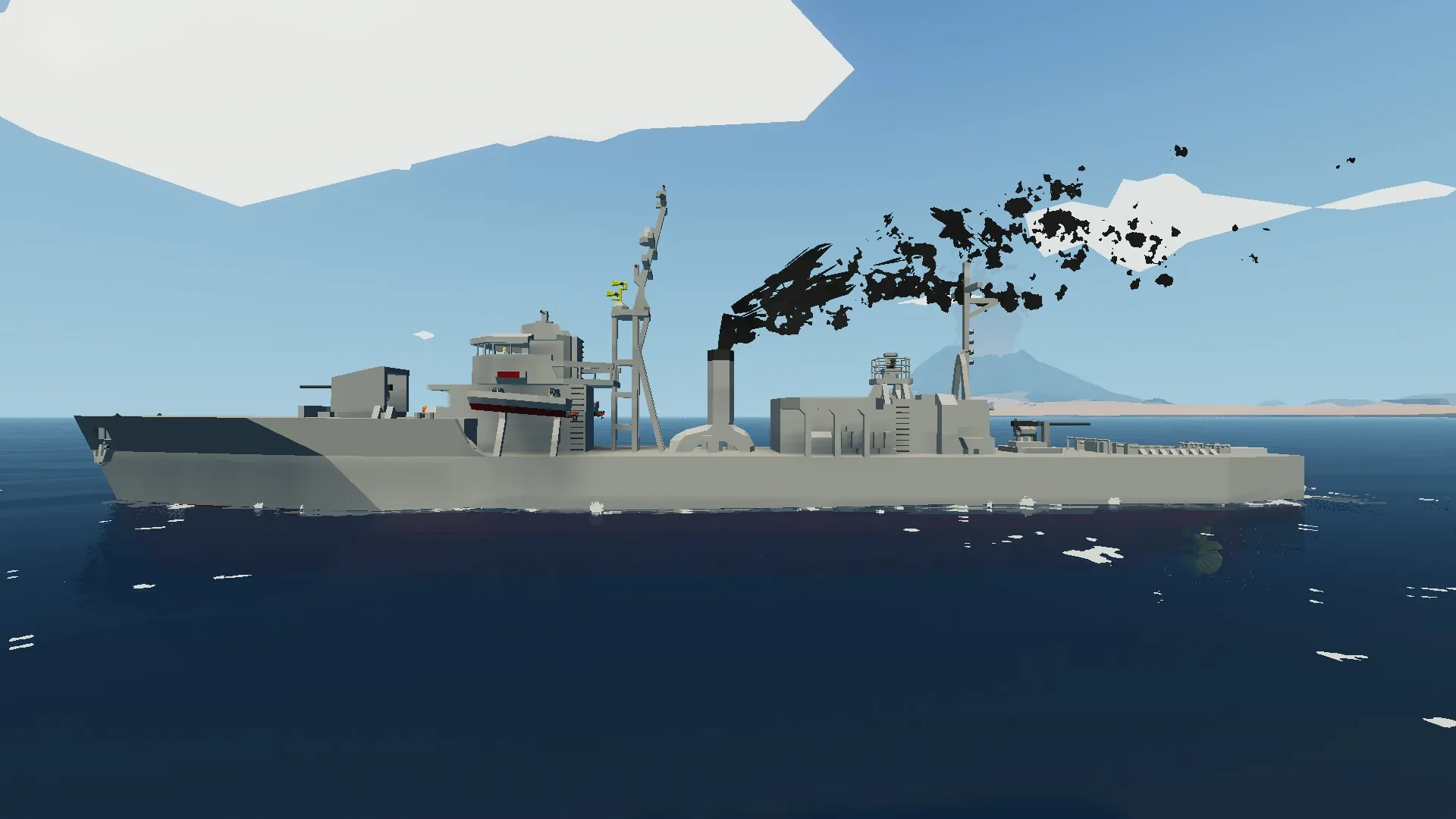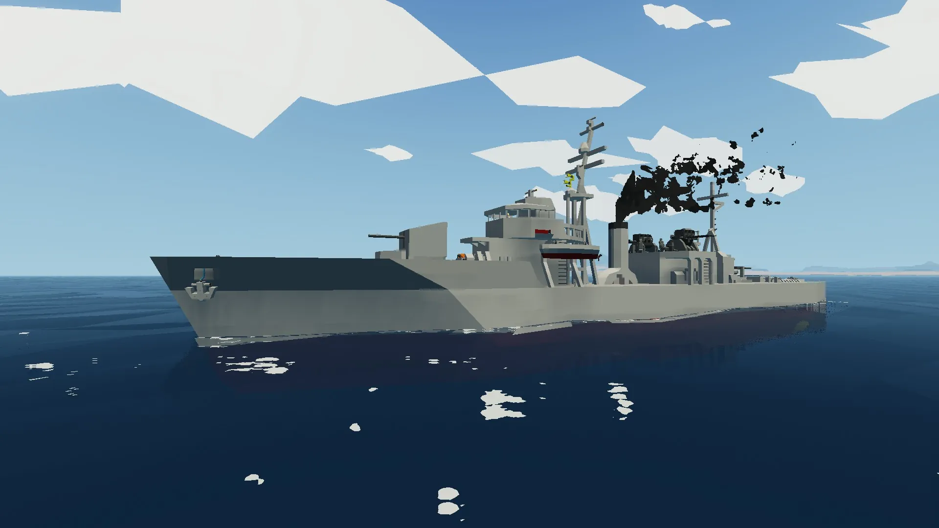 ※制作途中です。 大日本帝国海軍の丁型海防艦を基に作りました。主砲・艦橋位置など一部改変を入れています。 主砲は2基とも使用できます。 対空砲は少し使いにくいので改修予定です。