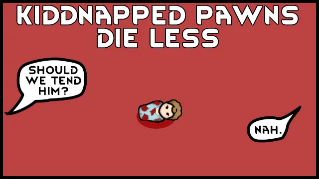Ever wonder why you almost never see your kidnapped colonists ever again? Turns out world pawns are tended at a rate of 1 injury for every [b] 3 in-game hours. That's 5x slower than a pawn with 0 medical! [/b]