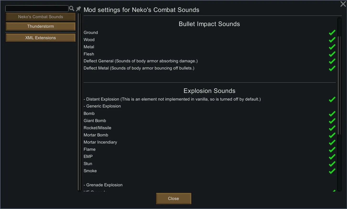 This mod replaces various combat-related sounds. It follows the same concept as [url=https://steamcommunity.com/sharedfiles/filedetails/?id=2095586726]Enhanced Combat Sounds[/url], and was created as a follow-up after that mod stopped being maintained.