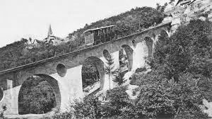 Today you can still see the metal bridge, crossing the Inn, the bottom station, the signature stone and brick archs and the foundation of the track siding for the two wagons, one of which was scrapped.