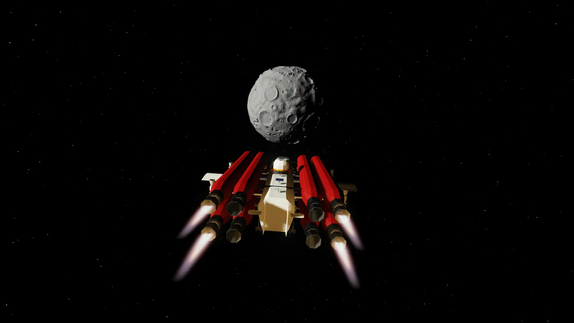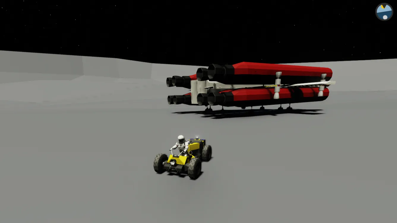 Once the moon surface can be seen, you are approximatively 10 000m altitude. Keeping to approach the moon in the same direction (almost perpendicular to the surface) accelerates your descent, but create danger as even pitching the spacecraft in parallel to the moon surface, your vertical speed would be extremely high. Recommendation is to start from far to gradually aligning with moon surface and reducing trhottle to 60-70%. The total travel time from earth hangar and moon space should be approx 15 min.