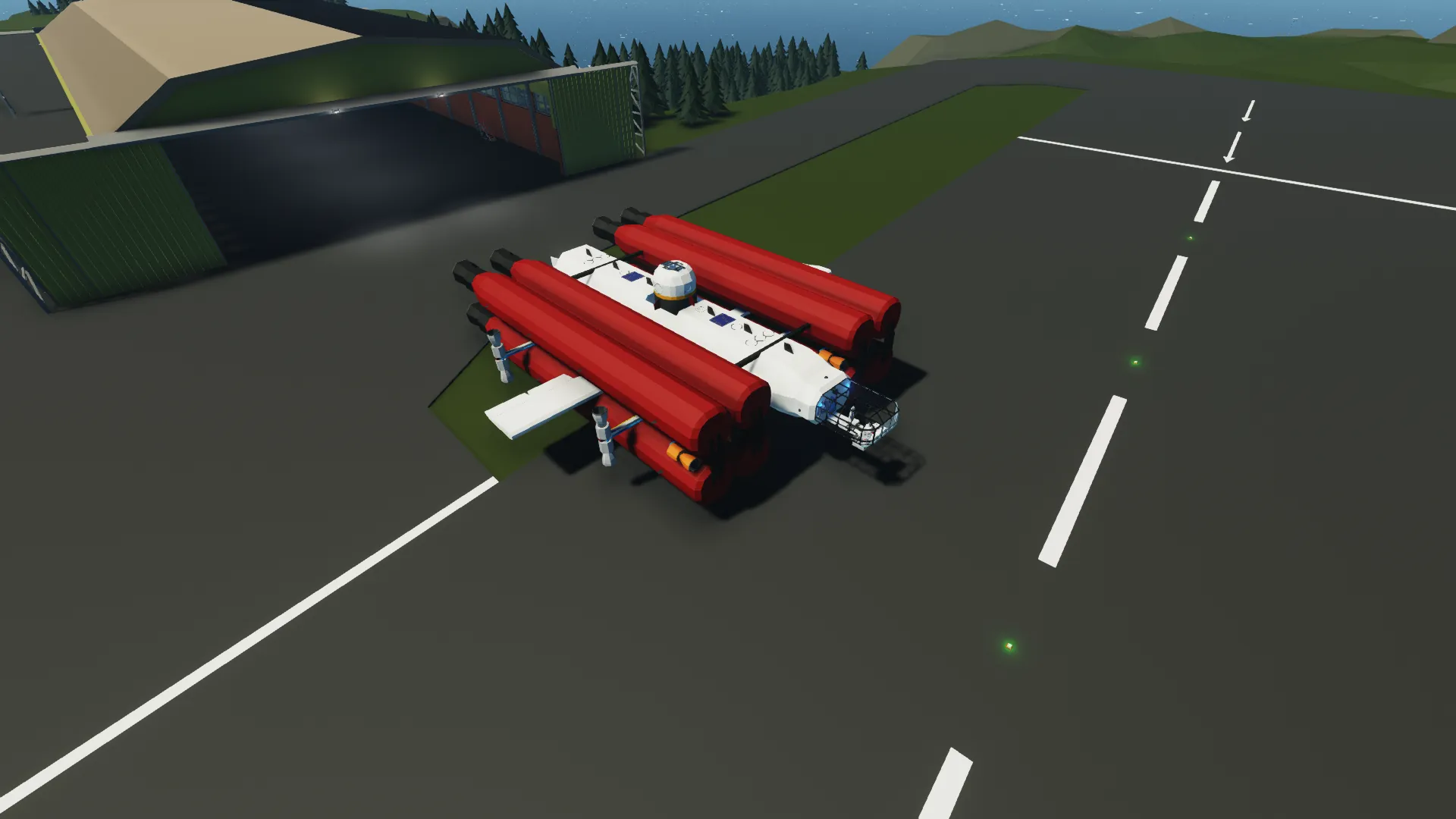 The spacecraft is designed for leaving immediately from a horizontal position, with rockets forward momentum and use of Aircraft wings. Leave the SPACE NAVIGATION key OFF. Place the throttle at approximate 40-50% (should be sufficient for smooth take-off without damagin the wheels). IMPORTANT: Make sure that the door is closed!