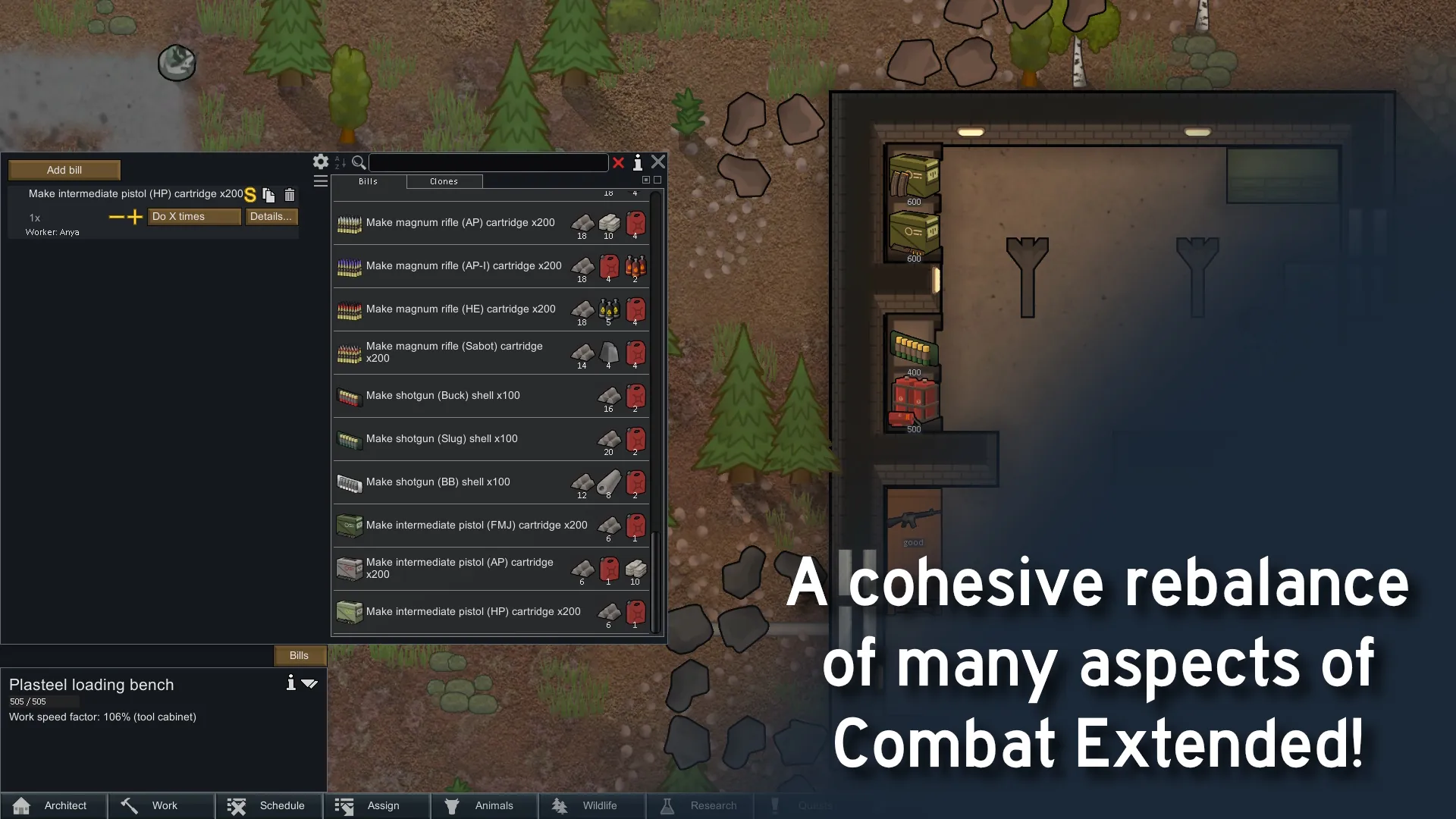It goes without saying that all aspects of Combat Extended and the Generic Ammo Experience have full integration, but this mod also patches many, many mods. Everything covered by the main mod (plus some more) is also covered by this mod.