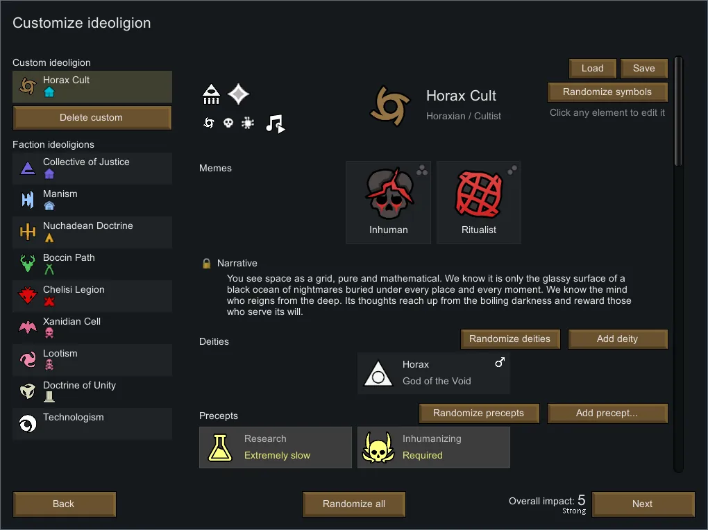 Allows other factions (including the player) to use the Horaxian style in their Ideologions. This mod also adds the Horax Cult icon as a usable ideology icon.