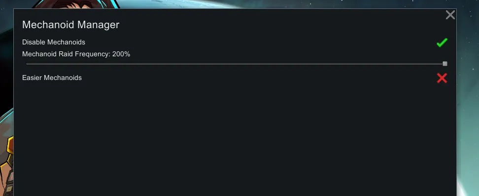 [*] Adjust the frequency of mechanoid encounters using a simple slider in the mod settings.